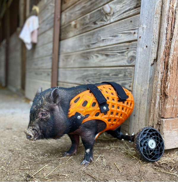 这头名叫Hero的小猪原先生活在弗吉尼亚州,两条后腿被冻伤危及生命,休斯顿的动物保护者得知此事后对它进行了紧急治疗,它两条冻伤的后腿也被截取,换上了假肢。